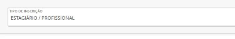 No campo “Tipo de Inscrição” selecione a opção “Estagiário”