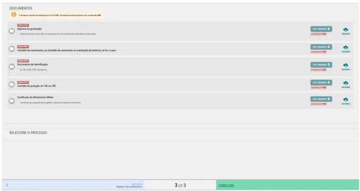 Informe seus dados corretamente. Em seguida, anexe a documentação necessária e conclua