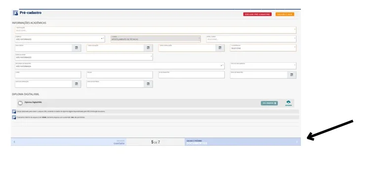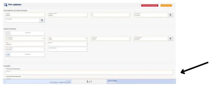 - Com o pré-cadastro aberto, localize o campo de “PROFISSIONAL” logo ao final da página.