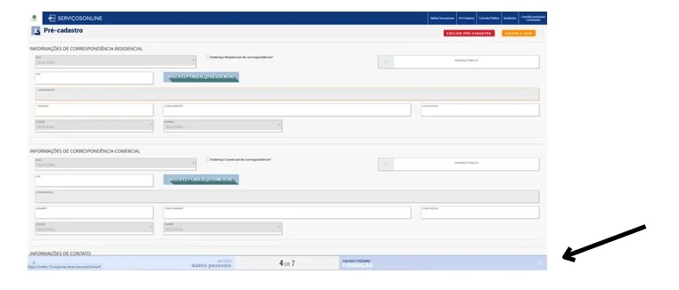Preencha com seus dados. É importante que os dados de identificação estejam com os mesmo dados do documento Avance para próxima página em “CONTATO”.