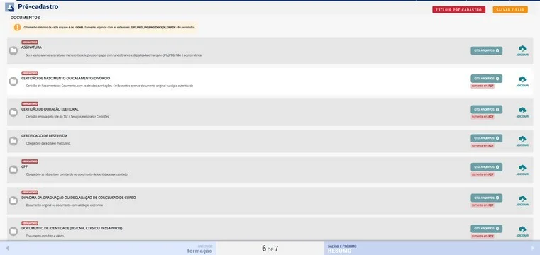 necessário incluir apenas os que constam como “OBRIGATÓRIOS”. Avance para próxima página em “RESUMO”.